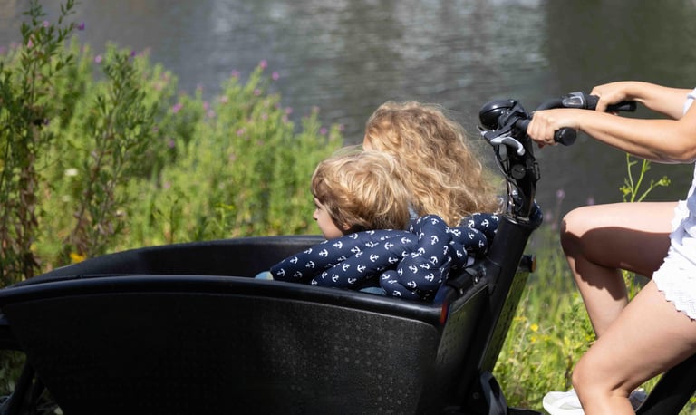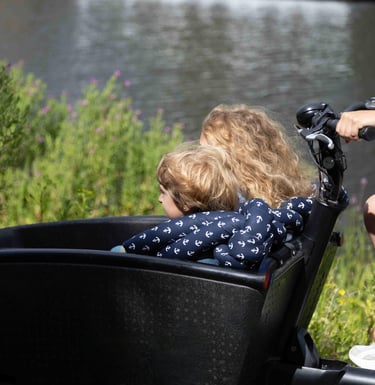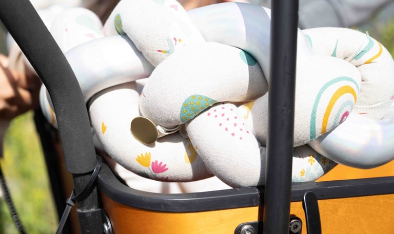We were inspired to create a unique padded bumper which fits all brands and models of cargo bikes, making our children journey safe and cosy enough to nap .. or just relax!